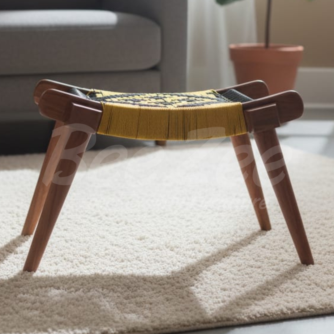 Handcrafted Woven Wooden Footstool – Traditional Mid-Century Modern Small Sitting Stool